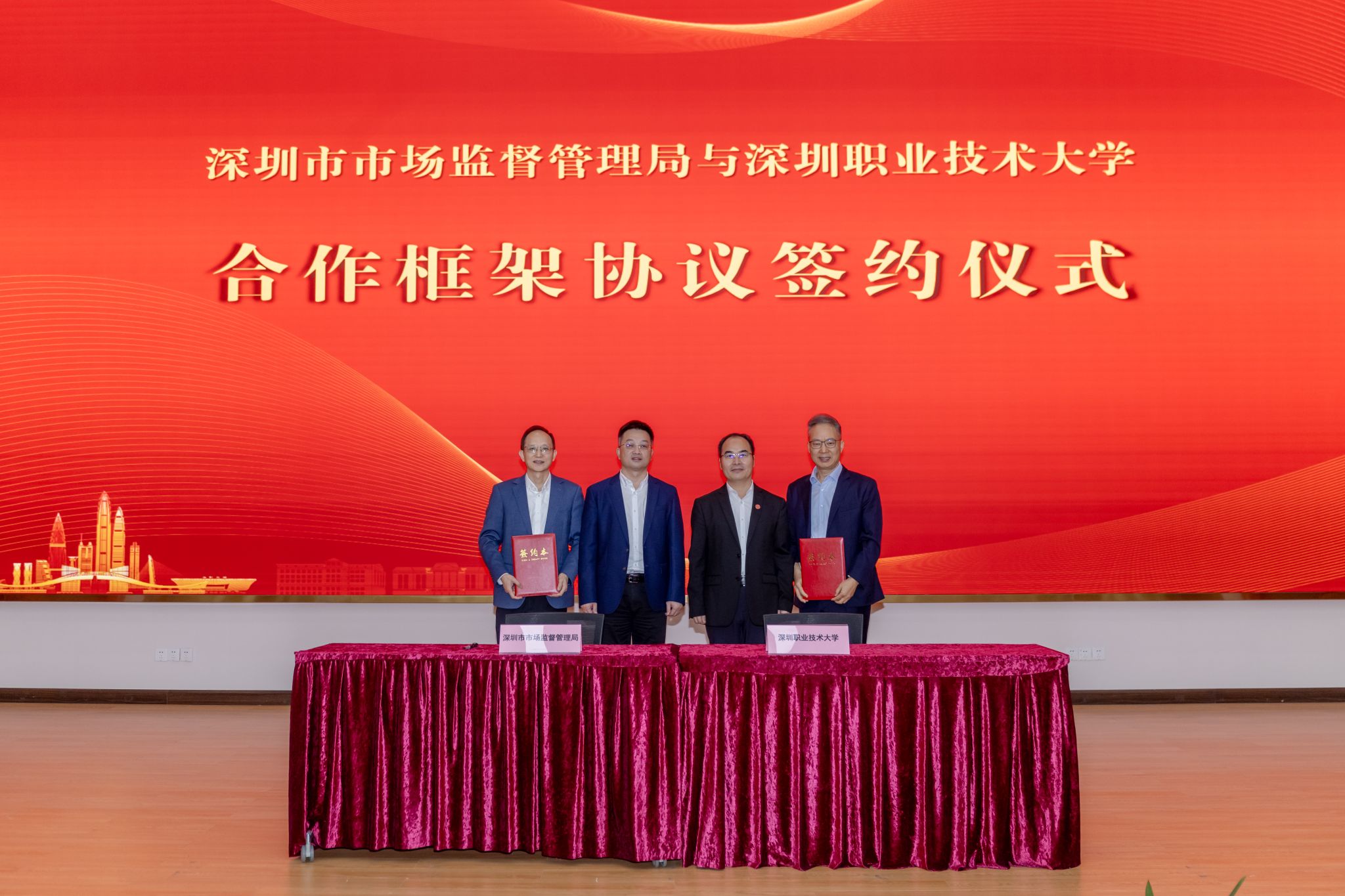 在双方领导的见证下,深圳市市场监督管理局与深圳职业技术大学共同签订了合作框架协议。