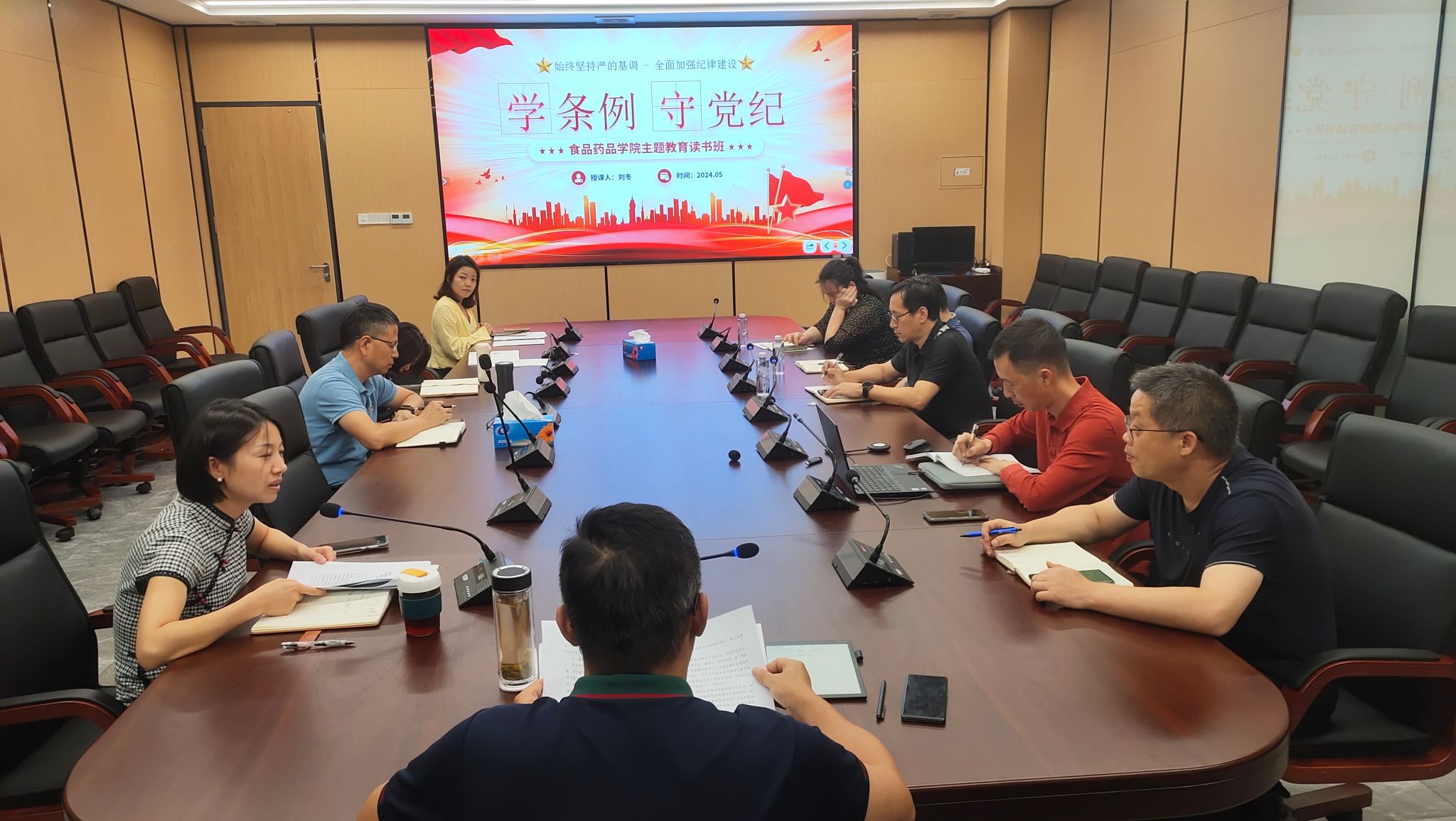 5月14日,食品药品学院党纪学习教育读书班暨学院党委理论学习中心组专题学习会在西丽湖校区格物园E座709会议室举行,学院党委委员、纪委委员、党支部书记、专业主任和组织员参加,学院党委书记刘冬主持并讲话。