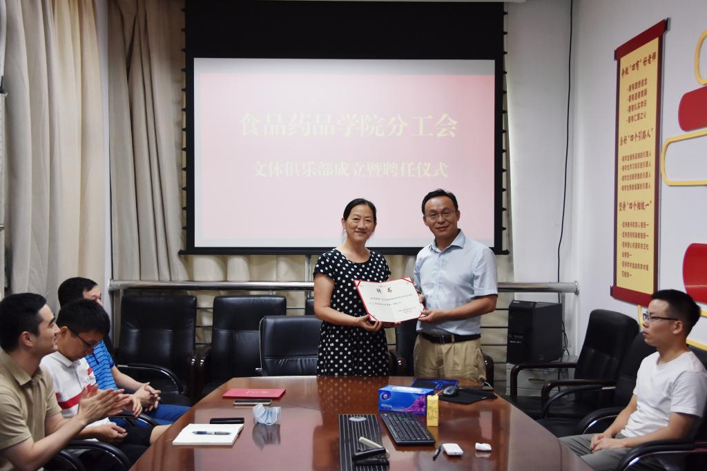 7月8日,食品药品学院分工会举行文体俱乐部成立仪式暨工会财务培训会在学院会议室举行。食品药品学院党总支书记、院长刘冬,副院长李永红、黄略略,党总支副书记、分工会主席出席会议,校工会财务专干何粟、学院分工会全体委员、各文体俱乐部会长参加会议。会议由学院分工会副主席冯金军举行。
