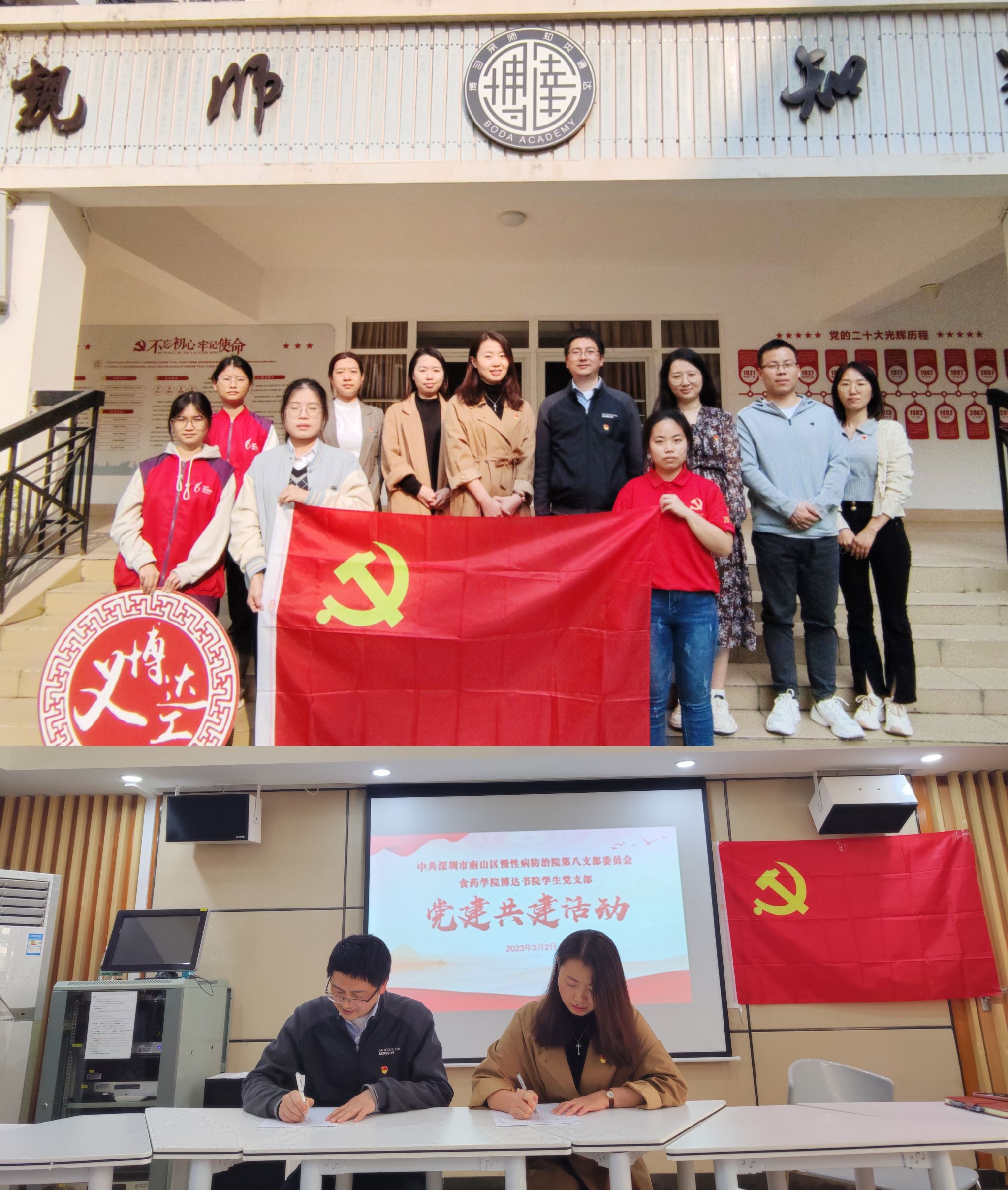 3月2日,食药学院博达书院学生党支部与深圳市南山区慢性病防治院第八党支部签订党建共建合作协议。双方就党建共建、人才培养、志愿服务等达成意向。