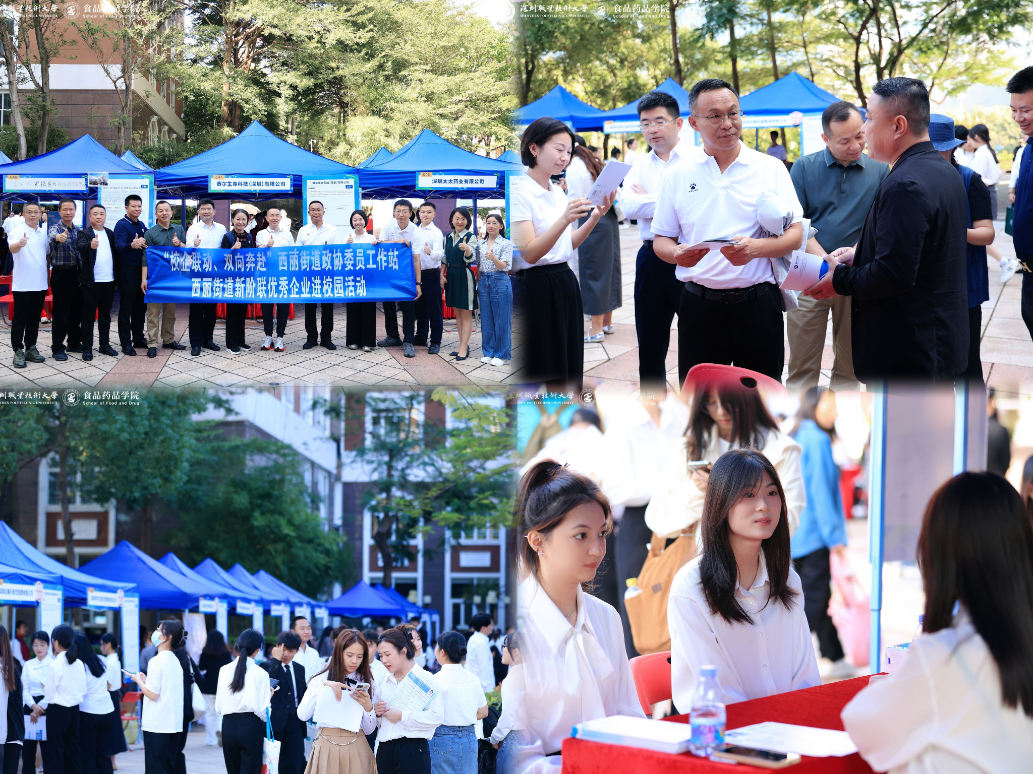 此外,在参加招聘会的企业中,有40余家企业来自深圳食品行业产教联盟和深圳生物医药产教联盟。两大产教联盟企业积极参与学院招聘会,进一步促进校际和校企之间多层面、多维度、全方位、深层次协作互动、合作共赢,推动学院人才培养。