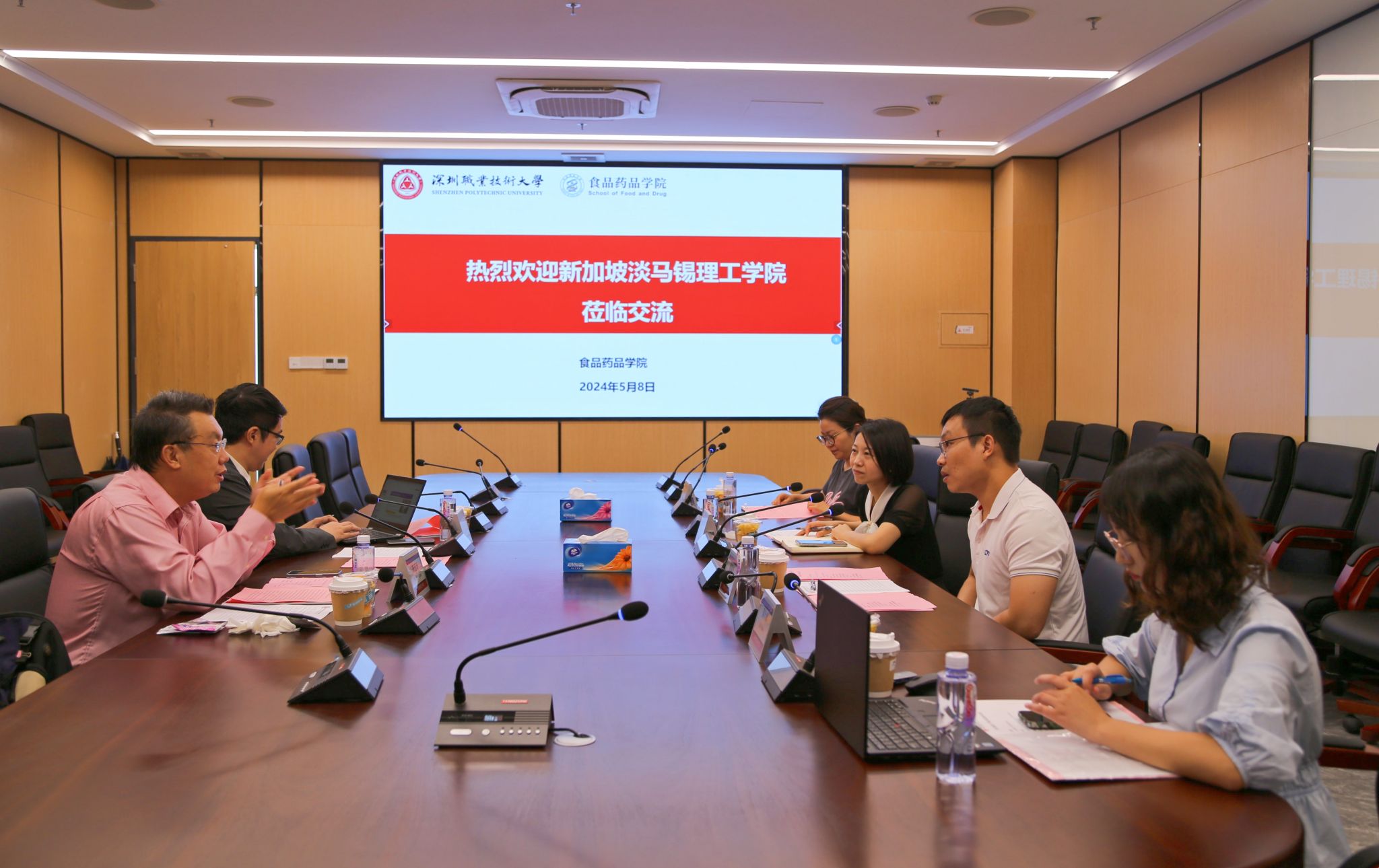 5月8日,新加坡淡马锡理工学院应用科学学院、信息技术学院教师代表到我校食品药品学院交流访问,食品药品学院副院长黄略略、食品营养与健康专业主任岳振峰、教学秘书林静选、人工智能学院教师代表谢锋然出席会议。