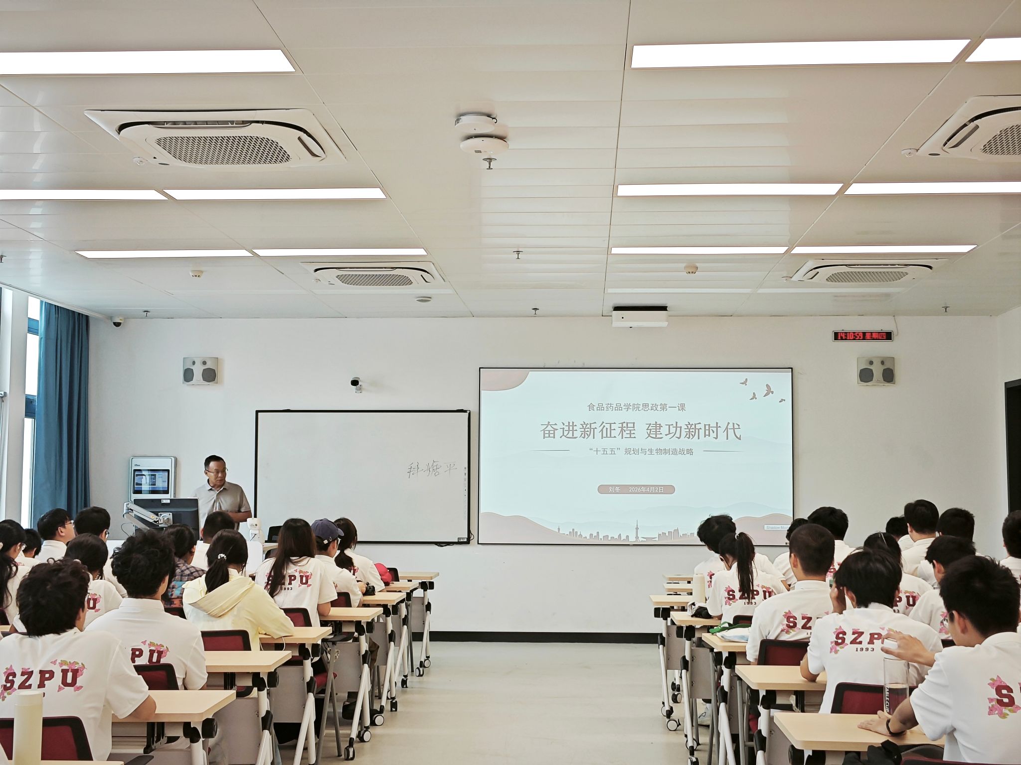 4月2日,食药学院党委书记、院长刘冬以“奋进新征程 建功新时代——‘十五五’规划与生物制造战略”为主题,为学院本科生讲授了一堂视野宏阔、内涵丰富的思政第一课。
