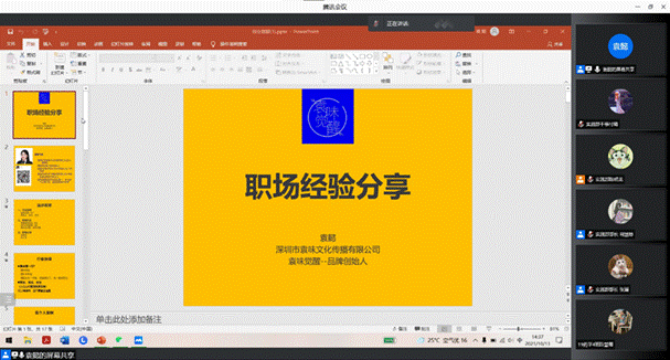 10月13日,食药学院在腾讯会议举办了一场以“职场经验分享”为主题的讲座,邀请优秀毕业生,现任袁味文化传播有限公司法人、董事长袁懿主讲。