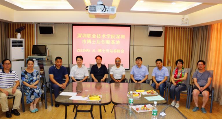6月4日,我校深圳市博士后创新基地Zeeshan Ali博士后出站答辩会在留仙洞校区博达书院多功能厅举行。出席会议的专家有:我校化生学院朱俊晨、杨剑、乔方,东南大学王志飞、深圳大学何庆华、中山大学邬燕琪,Zeeshan Ali博士后培养负责人代建国教授及科研处邓凌云参加会议。会议由答辩委员会组长杨剑主持。
